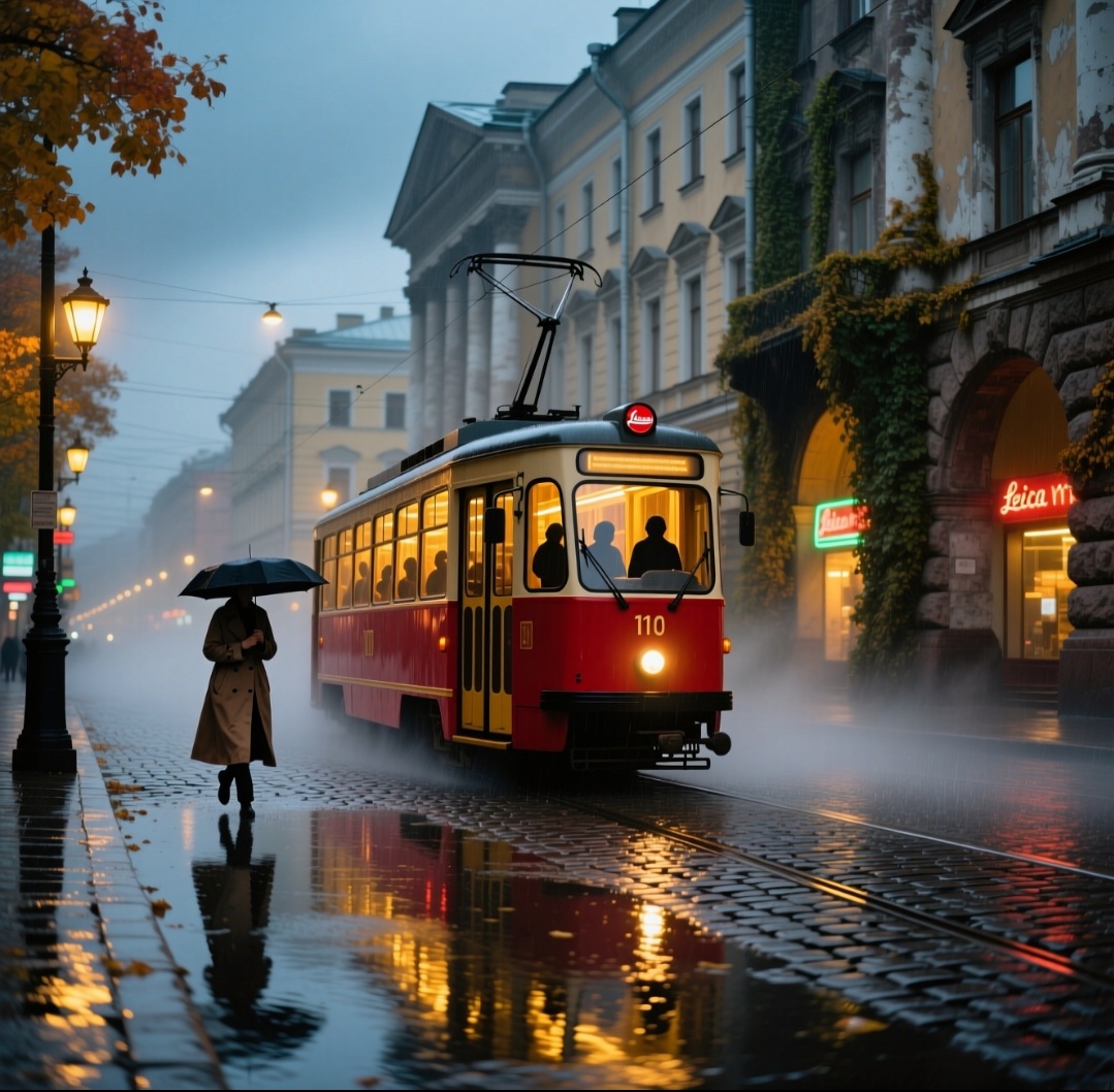 Жил-был в Купчино молодой человек по имени Рома. Работал курьером, мечтал стать диджеем, а пока возил суши по дождливым улицам на велосипеде, который, по его словам, «уже больше ржавчины, чем металла». Однажды утром он опаздывал на важное прослушивание в клуб на Петроградке. Решил: «Пешком — долго, вел — мокрый, метро — давка… поеду на трамвае!» Подходит к остановке «Трамвайный парк». Вывеска: Трамвай №10 — до Горьковской. На табло: «Прибывает: 2 минуты». Рома ждёт. Проходит 5 минут — ничего. 10 — тишина. 15 — появляется бабушка с сумкой и вздыхает: — Опять? Ну, значит, сегодня не судьба. — Как это — не судьба? — удивляется Рома. — Это же транспорт! — Сынок, — говорит бабушка, усаживаясь на скамейку, — в Петербурге трамвай — не средство передвижения. Это медитация в движении. Если он пришёл — хорошо. Если нет — тоже хорошо. Потому что, значит, тебе не надо было туда. Рома смотрит на часы. Прослушивание через 20 минут. Он в панике. Вдруг — чудо! Из-за поворота выезжает трам