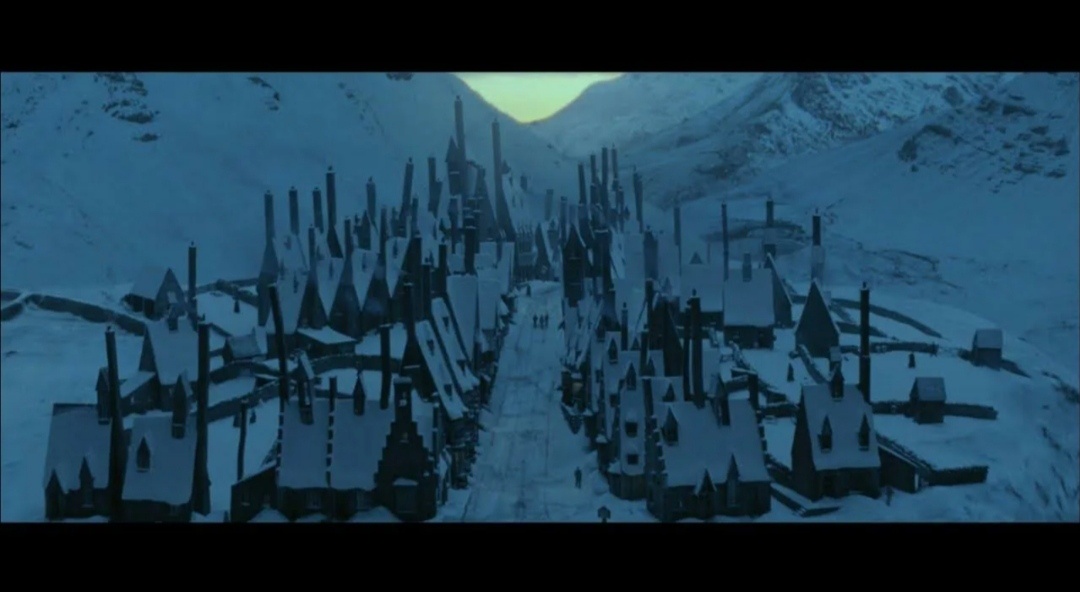 Эта деревушка, как мы помним из книг, не очень большая, но для учеников Хогвартса весьма привлекательная. Пойти в выходные "на вылазку" в Хогсмид было привилегией, и не только потому что там есть множество приятных магазинчиков и бар "Три метлы". Хогсмид наполнен волшебством и является островком свободы - здесь магам не нужно прятаться от маглов, а можно просто расслабиться и жить свою магическую жизнь. В фильмах о Гарри Поттере деревня выглядит так: А главное, в Хогсмиде расположена железнодорожная станция, на которую прибывает "Хогварс-экспресс". Для съёмок нового сериала о Гарри Поттере на строительство Хогсмида потратили 4 миллиона фунтов стерлингов - построили деревушку в деталях, среди леса, и проложили настоящие железнодорожные пути! По этим путям пройдёт новый Хогвартс-экспресс, локомотив волшебного поезда тоже уже попал в объектив фотокамер: В свой первый тайный визит в Хогсмид Гарри попал на третьем курсе: Хогсмид походил на рождественскую открытку. Сказочные домики под