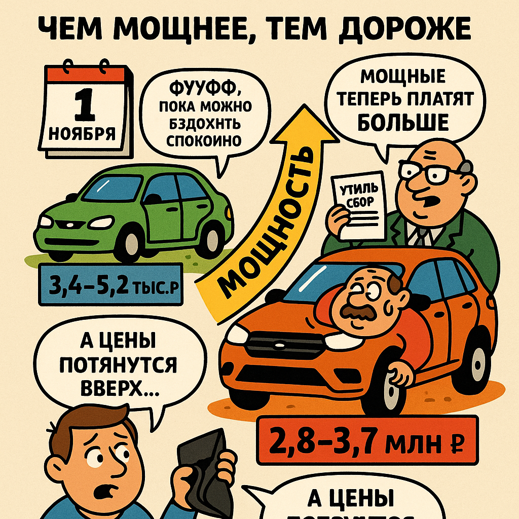 С 1 ноября 2025 года в России меняются правила расчёта утилизационного сбора. Теперь мало учитывать только объём двигателя — в формуле появится ещё и мощность. Чем больше «лошадей» под капотом, тем выше коэффициент и итоговая сумма. Официально это сделано для «исключения лазеек»: раньше можно было ввезти мощную машину с маленьким мотором и заплатить смешные 3–5 тысяч рублей. Теперь даже компактные, но злые турбомоторы попадут под удар. Минимальный утильсбор (3 400–5 200 ₽) сохраняется только для машин мощностью до 160 л.с. По статистике Минпромторга, 88% регистраций в последние годы укладываются в этот диапазон. На Дальнем Востоке таких и вовсе 95% — там ввозят в основном японские малолитражки. Для большинства массовых покупателей ситуация не изменится. А вот тем, кто выбирает автомобили помощнее, придётся раскошелиться. По сути, новая шкала превращает утильсбор в дополнительный налог на мощность. До ноября 2025 года всё зависело только от объёма. Получалась абсурдная ситуация: 2.5-лит