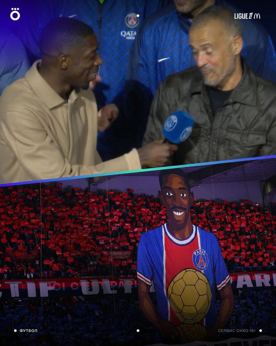 «Парк де Пренс» сегодня празднует. Команда года, лучший тренер и лучший игрок 👏 Скромняга Дембеле постеснялся сказать речь. Заставить выступить Луиса Энрике тоже не вышло 😁