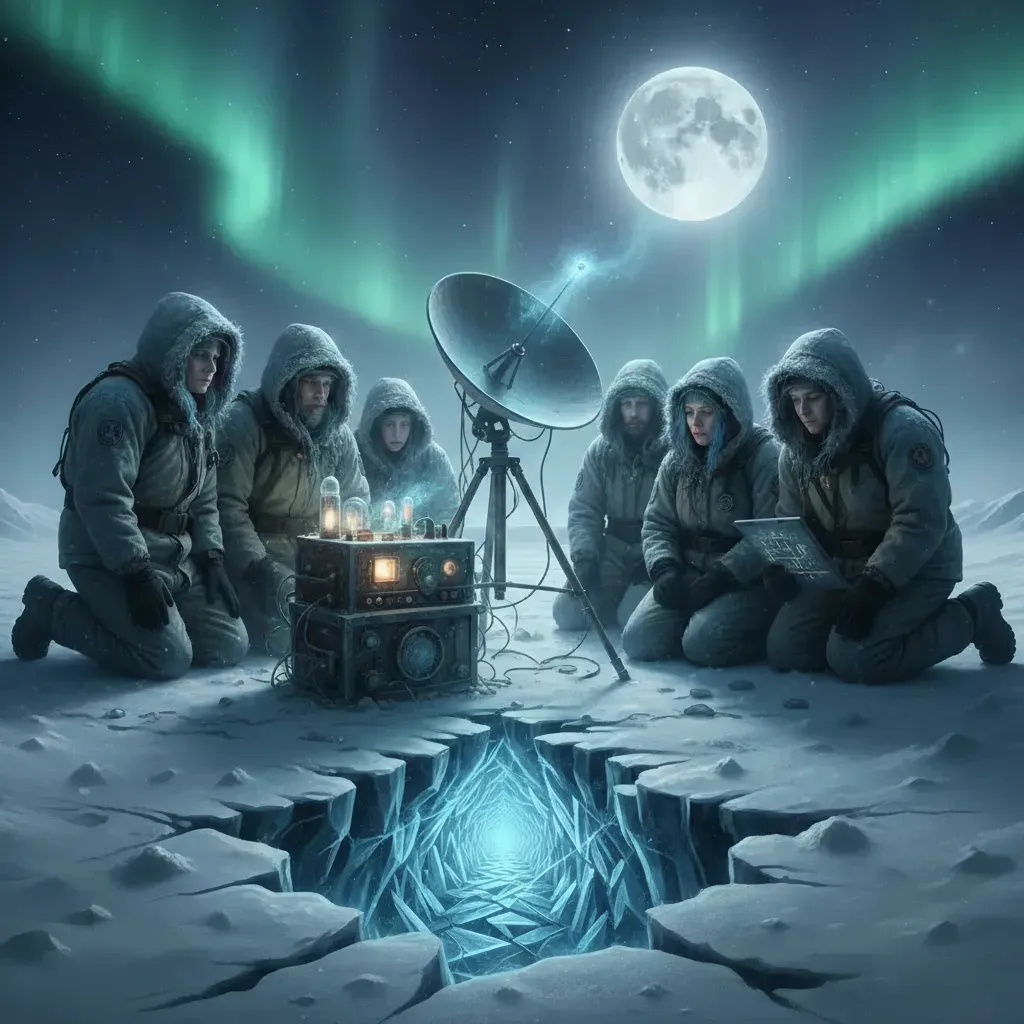 Впервые я услышала его шёпот не ушами, а кожей. Как будто мороз, пришедший с лунной орбиты, лёг на моё сердце и попросил впустить его внутрь. Тогда я ещё не знала, что этот холод — зов. Что наш прибор, усталый и хриплый, поймает не радиошум космического ветра, а дверь. И что за этой дверью тянется изломанный коридор к чему-то, у чего нет имени в нашем языке. В ту ночь мы были всего лишь семь человек, окружённых снегом и тишиной Гренландии. И каждый из нас думал, что знает, где заканчивается наука и начинается миф. Мы ошибались.