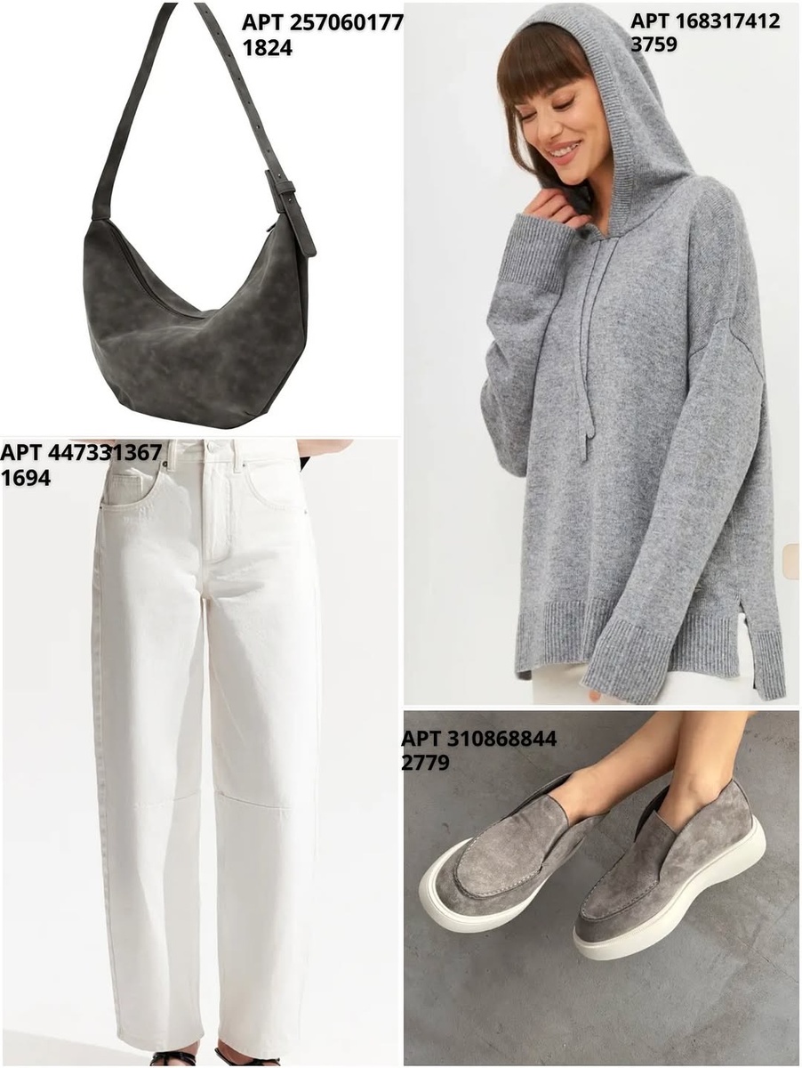 Мягкие оттенки серого, песочного и какао — лучшая основа для спокойной, но выразительной повседневности. Такая палитра не спорит с лицом, легко сочетает вещи между собой и выглядит дороже своей цены. Ниже — подробный разбор каждой находки с фото. Идём строго по порядку артикулов: крой, посадка, нюансы ткани, идеи сочетаний и короткий совет стилиста.