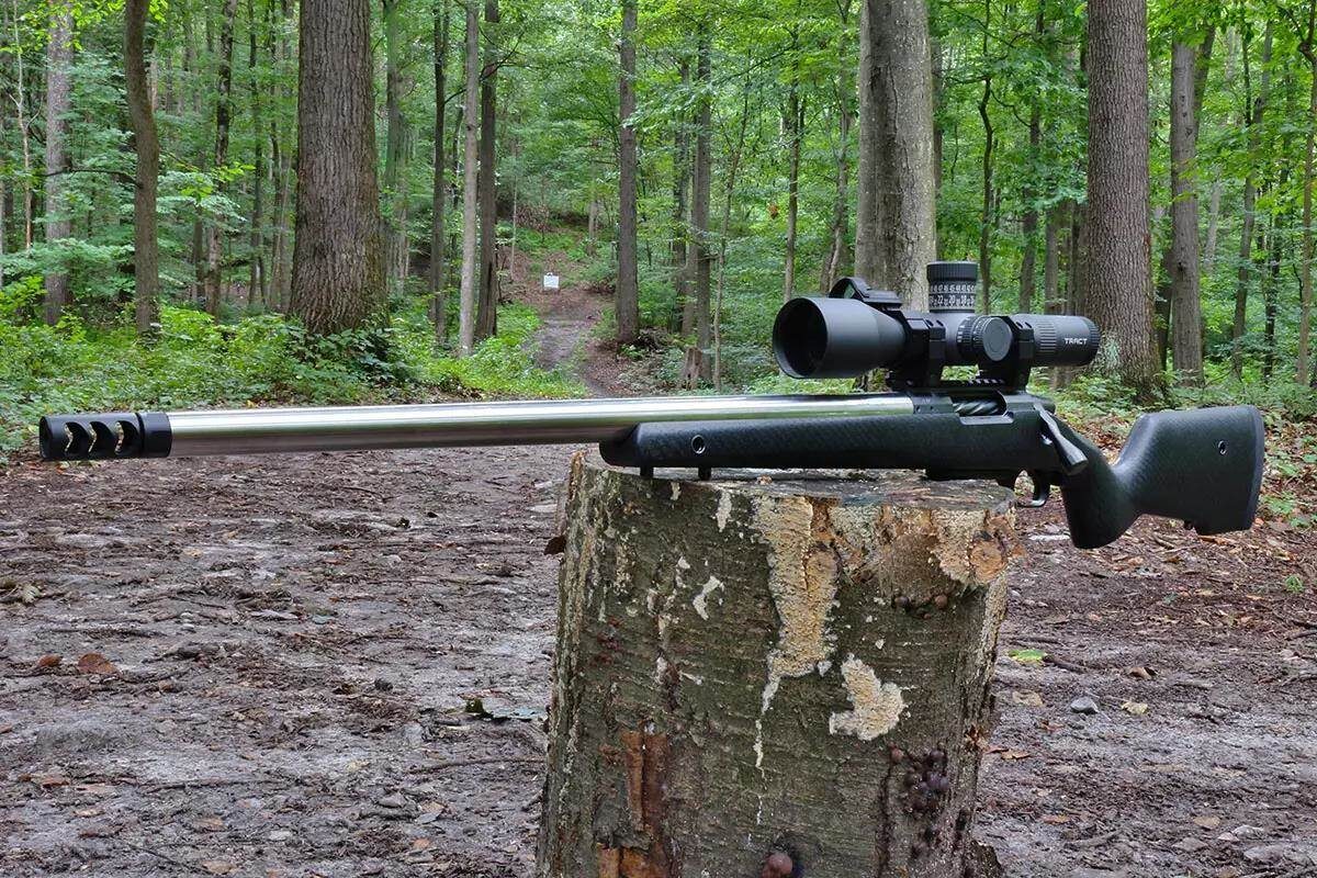 Жители Пенсильвании питают особую любовь к 6-миллиметровым калибрам. Мой выбор пал на современный и баллистически эффективный 6mm GT. Geissele предоставил заготовку с шагом нарезов 1:7.5, которую мастер из Terminus обработал под тяжёлый контур длиной 24 дюйма (610 мм). К нему я добавил обновлённый спусковой механизм Super 700 — двухступенчатый, с возможностью перевода в одноступенчатый режим и регулировкой усилия спуска до смешных 850 граммов. Идеально для соревнований и охоты.