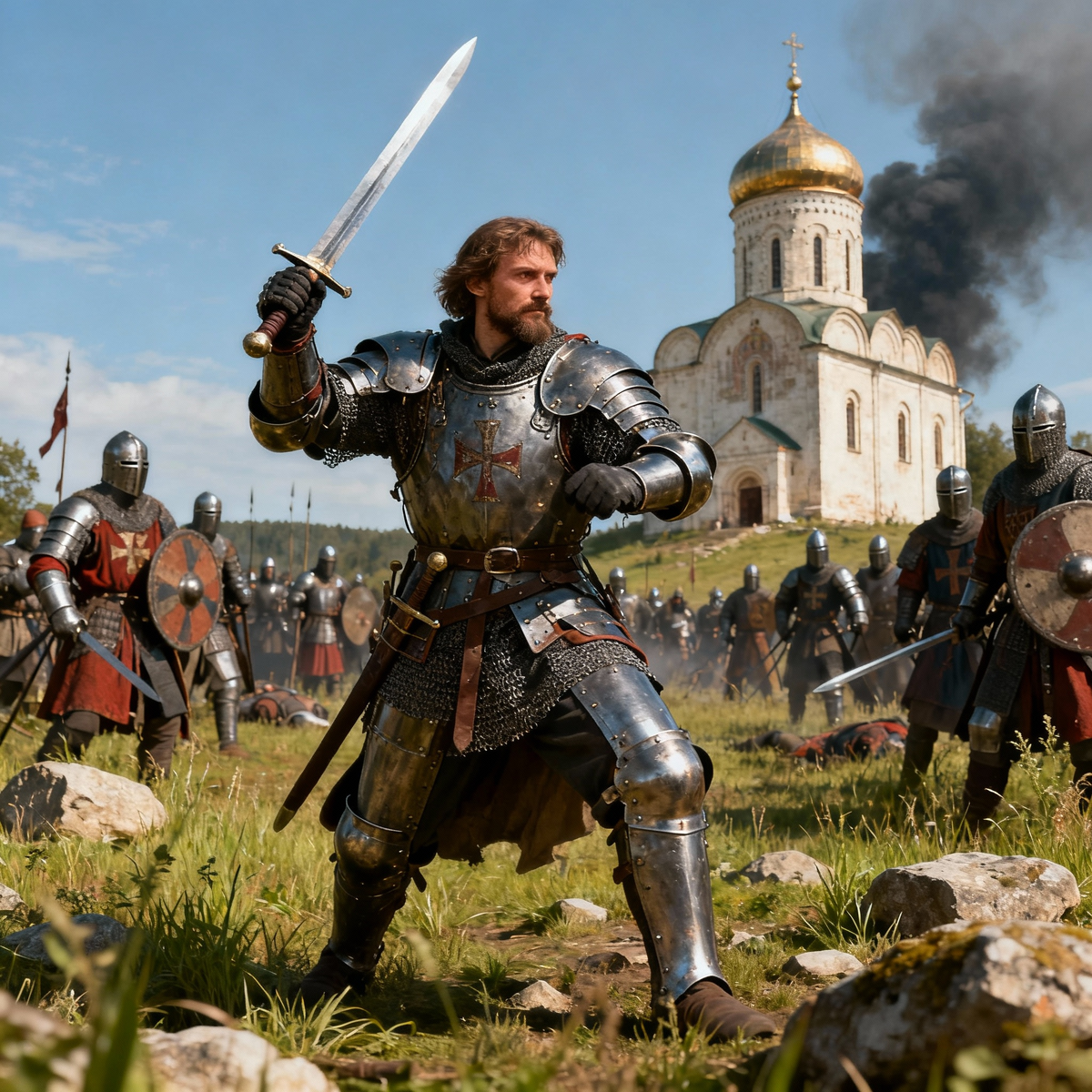 Александр Невский – это человек, чьи поступки и подвиги вызывают у меня настоящее уважение. Читая «Повесть о житии…», я был поражён тем, каким он был сильным, смелым и мудрым князем. В самом начале произведения говорится, что Александр был выше других людей ростом, голос его был сильным, как труба, а лицом он сравнивается с прекрасным Иосифом. Но больше всего мне запомнилась не его сила, а внутренняя твёрдость и вера. Особенно впечатлил момент, когда Александр, узнав о приближении врагов, пошёл в церковь Святой Софии и горячо молился. Он просил у Бога защитить Русь не силой, а правдой: «не в силе Бог, но в правде». После этого он смог вдохновить и свою дружину. Мне нравится, что Александр всегда опирался на веру и действовал не ради славы, а ради защиты родной земли и людей. Его мужество проявилось и в битве на Неве, когда он быстро и решительно повёл малую дружину против шведского войска, не ожидая подмоги. Он не только сам сражался бесстрашно, но и был настоящим примером для своих со