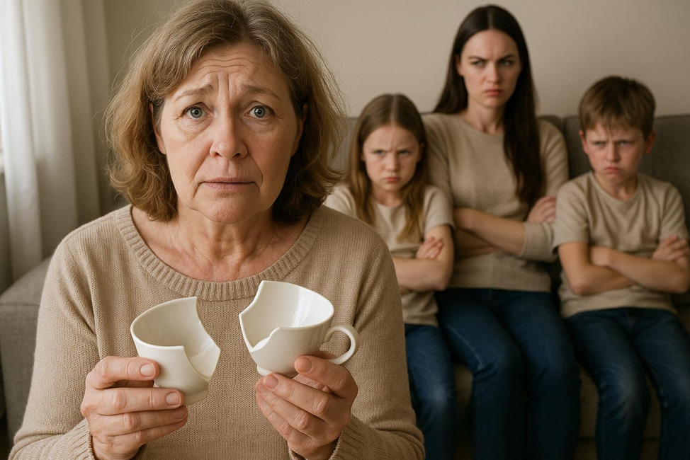 "Данилка разбил... мамину чашку," — всхлипывала она. "Ту самую, с розочками... Единственную, что у меня от мамы осталась..."