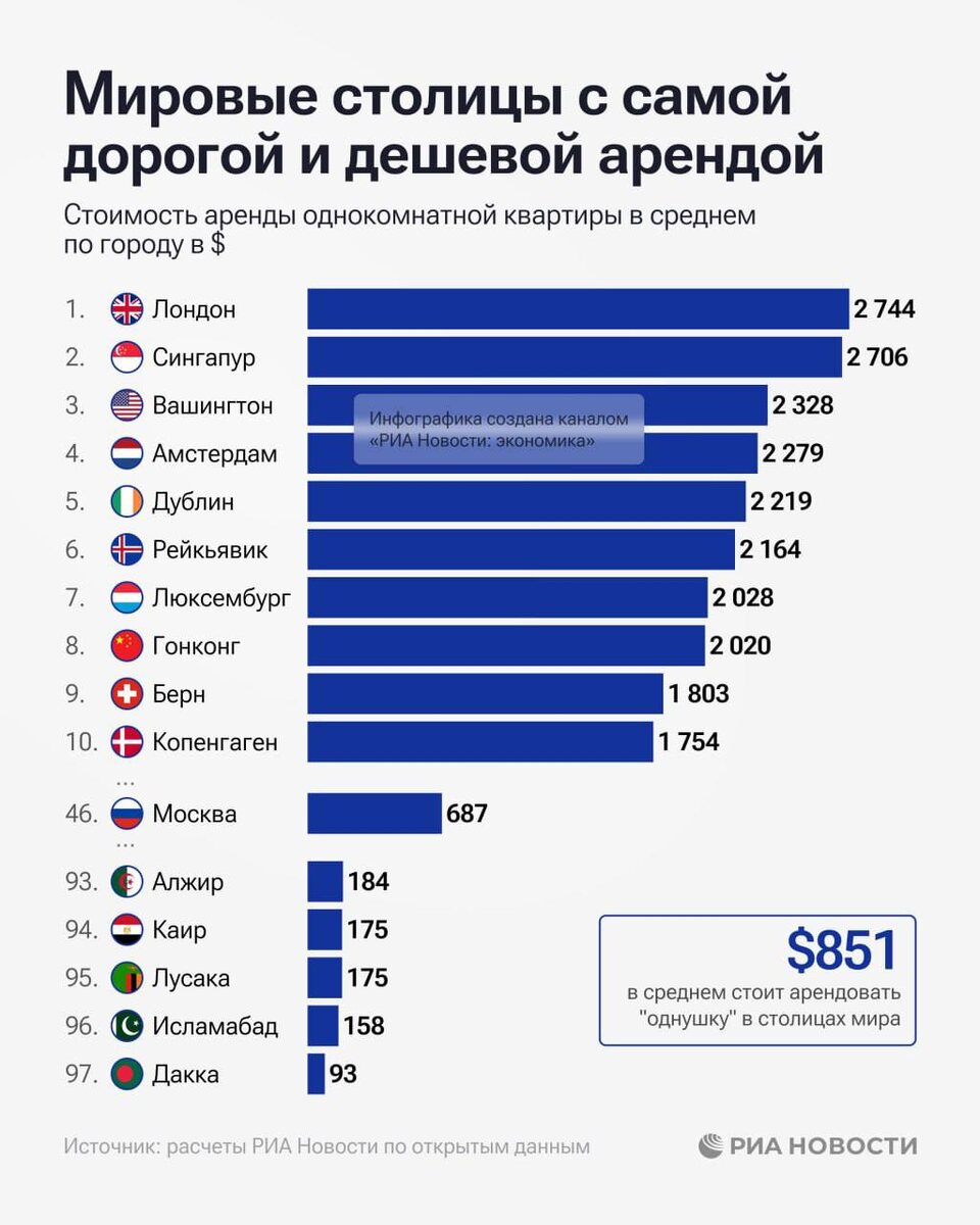 😱 Где дороже всего снимать квартиру? Лондон и Сингапур возглавили рейтинг самых дорогих столиц по аренде жилья - более $2700 в месяц за однокомнатную. А вот Дакка в Бангладеш обойдется всего в $93. Москва на 46-м месте со средней арендой $687. "Без пафоса | финансы"! Подпишись! #недвижимость #аренда #финансы