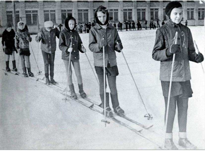 Да, именно так правильно пишется сокращенное название предмета физкультура, и была она и есть и будет, только в каждое время она ассоциировалась по-разному. Спроси сейчас мой 1975 чем мы занимались на физ-ре, первое воспоминание «катались на лыжах»…а теперь посмотрите на фото. Прям женская сборная, стопудово физрук номера на куртках нарисовал, не заморачивался особо. Правду говорят, что все анекдоты и загадки народ выносит из жизни. Две доски на двух резинках плюс две палки на шнурках, что это?))) А это у них на ногах советские лыжи размера икс сайз, то бишь по нашему безразмерные или всем подходящие. заметил что-нибудь обьединяющее эти две фотографии кроме лыж? Во-первых, одежда, она не то чтобы похожа, она одинаковая на некоторых девочках, что пальто что куртки, у мальчишек тоже такие же были свитера, шапки и пальто. Больше всего мне жалко четвертую лыжницу (слева направо конечно), мало того, что в пальто, еще в пуховом платке, под которым голова намокнет во время так называемого к