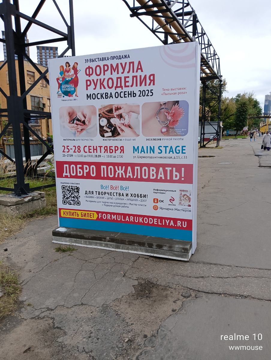 Ох не нравится мне эта традиция - приезжать на Формулу больной.... В прошлом году это была бессонница, в этом воспаление нерва в руке.... Поехала с больной рукой. Почему? Потому что неделю перед этим видела только режим лазарета - мази, таблетки, анализы, уколы.... Честно? Задолбало!!! Поэтому вот. На станции метро я потерялась в какую сторону выходить. Ориентировалась на спешащую девушку с вышивкой на сумке, определив, что она "из наших". Ехала я в четверг утром, решив, что раз я так "удачно заболела", то буду на полупустой выставке..... Кстати, сзади хвост ещё длиннее. Интригу разрушу сразу - в руку нещадно пихали и толкали. Успокаивала себя тем, что это бесплатный массаж... Я шла только на аллею дизайнеров. Пообниматься и пощупать. Пощупать, в смысле вышивку)))) К фирмам-производителям даже не пошла. Все что мне надо - есть на маркетплейсах. Вообще, ИМХО, на такие выставки надо больше индивидуальных дизайнеров, чтобы они себя показывали. Но я не в сказке живу, понимаю, что а