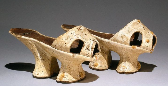 Конечно, тот каблук распространялся и на переднюю и на заднюю часть подошвы, он был массивен и значительно отличался от текущего понимания определения. И тем не менее, это первое достоверно подтверждённое археологами применение нового типа обуви.