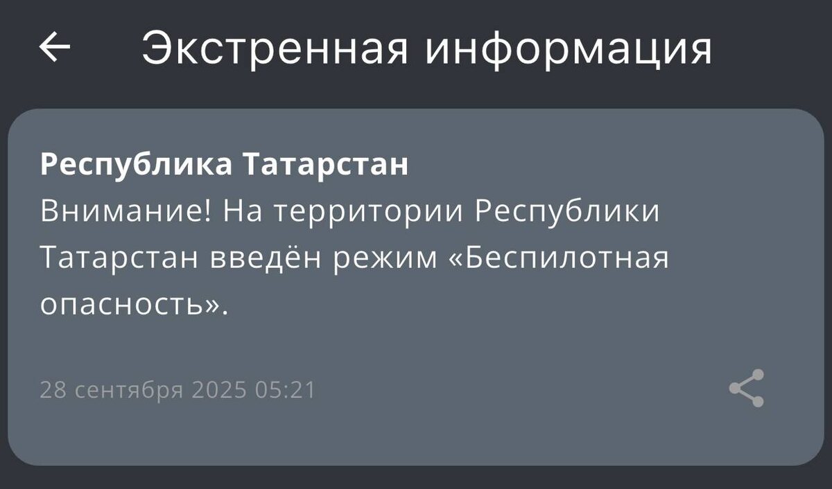 На территории Татарстана с 05:21 введен режим «Беспилотная опасность». 🌟 Татарстан News в MAX