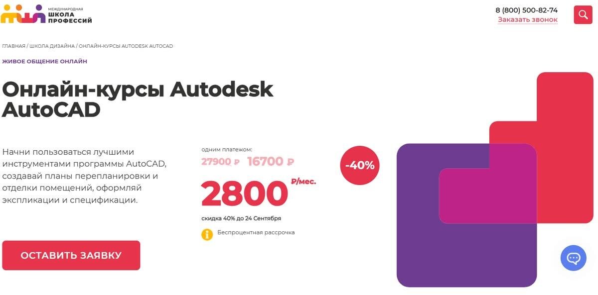 Ссылка на официальный сайт курса. - Веб-дизайн (Eduson Academy) — дополнительное направление для оформления портфолио проектов AutoCAD.