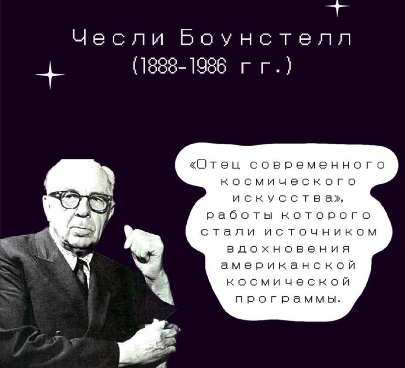 Продолжаем замечательную рубрику #КосмосВИскусстве и знакомимся с новым автором уже в направлении «космизма»! 🤩🤩Американский художник, дизайнер, иллюстратор и «отец современного космического искусства» — Чесли Боунстелла. ⭐️🤝 Любовь Чесли к астрономии привела его к попыткам объединить опыт в живописи и моделировании архитектурных сооружений в изображениях космической тематики. 🔭🪐Первая астрономическая картина была создана в 1905 г., когда 17-летний Чесли наблюдал за Сатурном в обсерватории Сан-Хосе. 🌗Вид Сатурна, обозреваемого с Титана, стал самым известным астрономическим пейзажем. Картина была написана с использованием глиняных моделей, фотографических трюков и различных техник живописи. 🌌💫Когда Вернер фон Браун организовывал симпозиум для «Collier's Weekly», посвящённый космоплаванию, он пригласил Чесли Боунстелла для иллюстрирования своих концепций будущих комических путешествий. Вскоре его имя было присвоено ежегодной художественной премии ASFA.