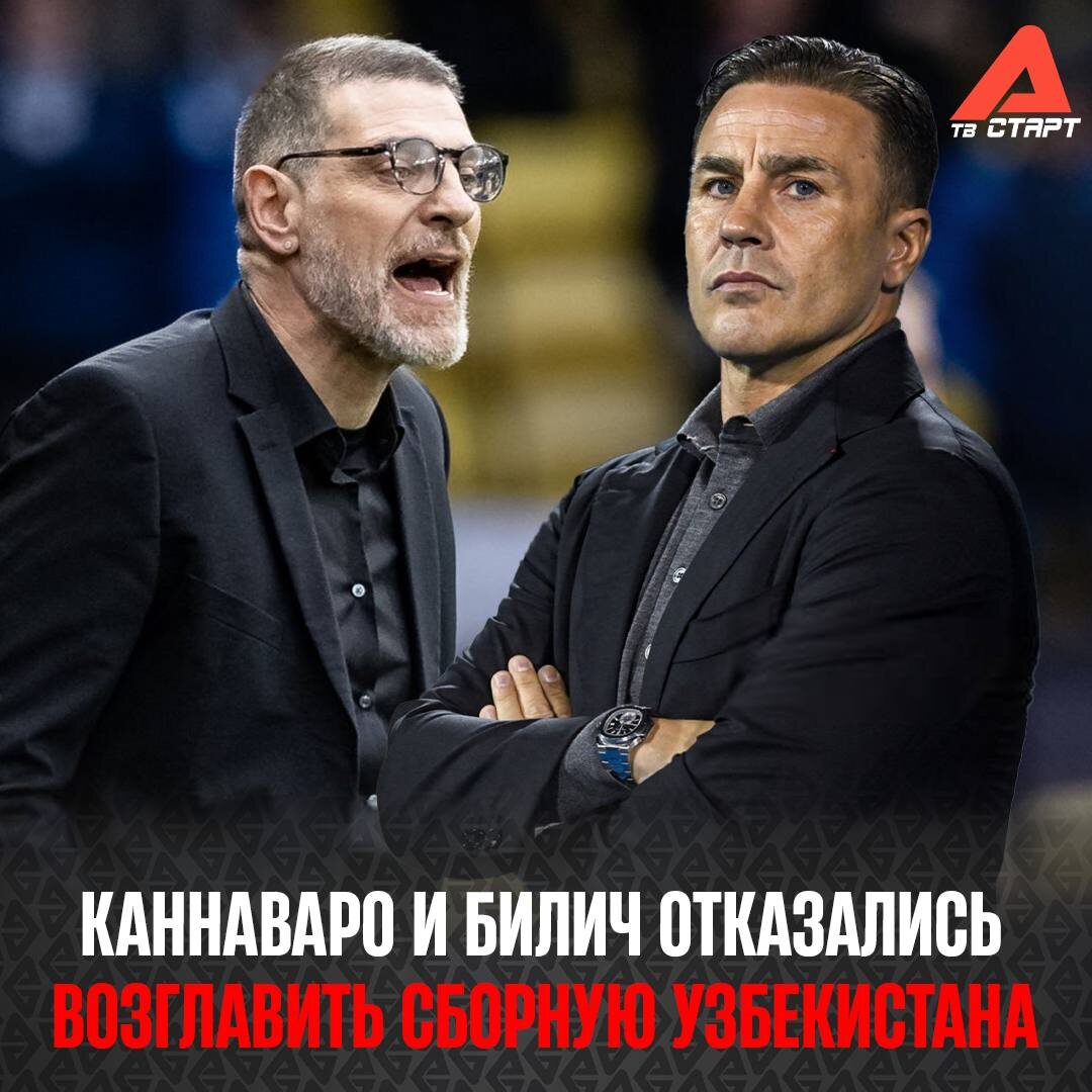 ❌🇺🇿 Сразу два топ-тренера отказали Узбекистану Фабио Каннаваро и Славен Билич не согласились взяться за команду, по информации Нарзуллы Сайдуллаева. Причина — специалисты хотят долгосрочные контракты. А у Узбекистана пока что планы лишь на ЧМ-2026 🏆 Подписывайся на ТВ СТАРТ в MAX📲