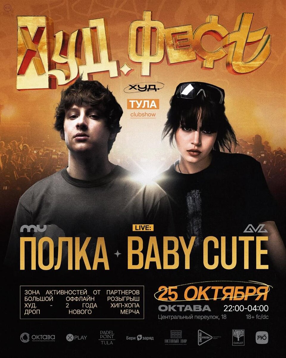 🎫 – «ХУД.ФЕСТ»: фестиваль в Туле 🎤 – Baby Cute, Полка 📍 – «Октава», Тула, Центральный пер. д. 18 🗓 – 25 октября 💵 – от 870 руб. 🔗 – билеты (18+) #концерт #худфест #тула #babycute #полка #октава 👉 Список концертов: сентябрь • октябрь • ноябрь • декабрь @mainstreamusic