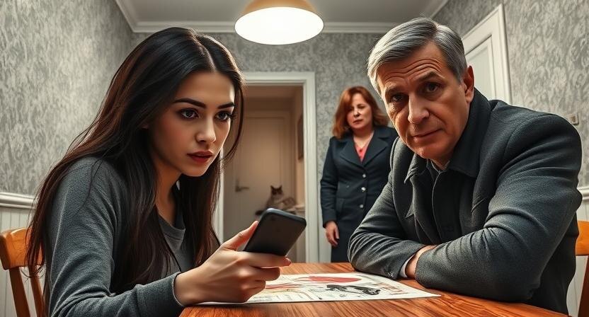 В кухне было душно. Маленькая лампочка под потолком освещала серые обои, которые хозяин квартиры ещё десять лет назад обещал переклеить. Мария держалась прямо, хотя внутри всё сжималось. Её руки слегка дрожали — от бессонной ночи, от обиды, от ощущения, что мир за одну секунду перевернулся.