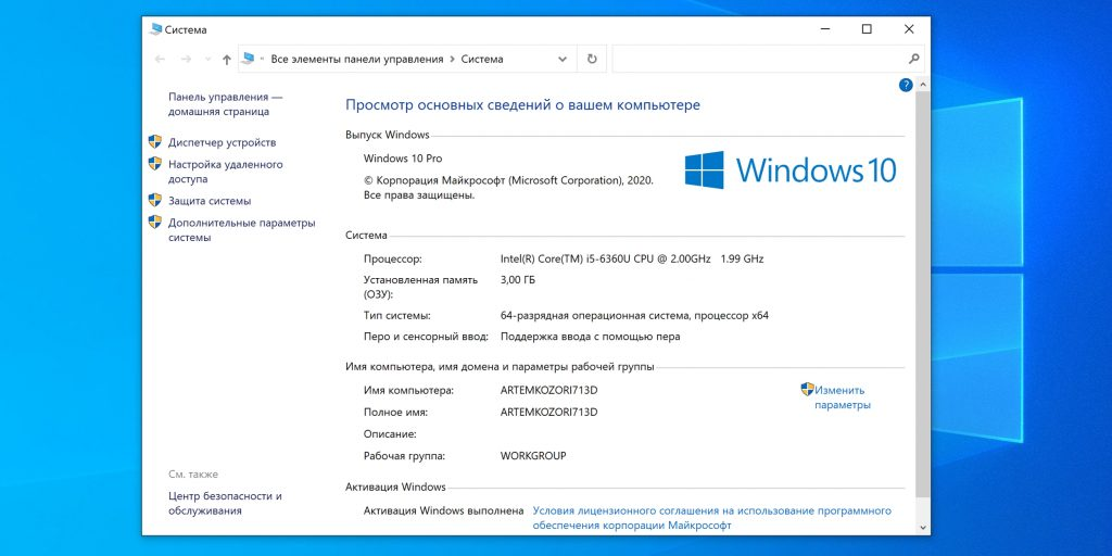 Открой меню «Пуск», зайди в «Настройки» → «Система» → «О системе». Там отображаются модель, процессор, объем ОЗУ, тип и версия Windows, разрядность.