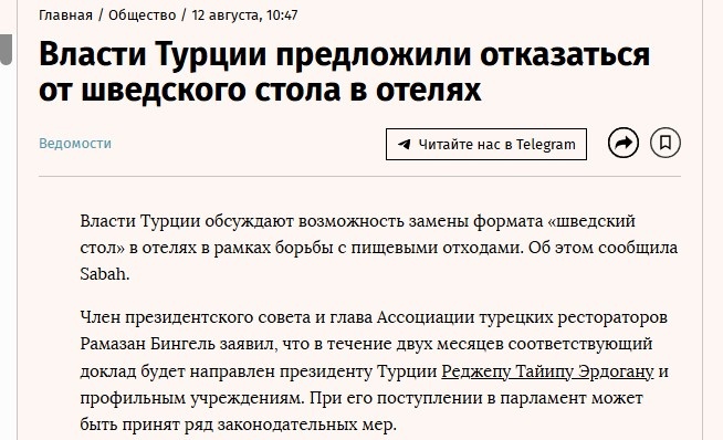 Дмитрий Горин, вице-президент Российского союза туроператоров, подчеркивает, что дискуссии об отмене “все включено” в Турции ведутся последние 20 лет, но эта система выгодна не только туристам, но и самим отелям. Он отмечает, что только за 2025 год тема отмены “шведского стола” поднималась уже седьмой раз, при этом инициативу чаще всего выдвигают не официальные власти, а представители смежных отраслей - рестораны и сувенирные магазины за территорией отелей, которые не получают прибыль из-за того, что туристы не предусматривают дополнительных трат за пределами отеля.