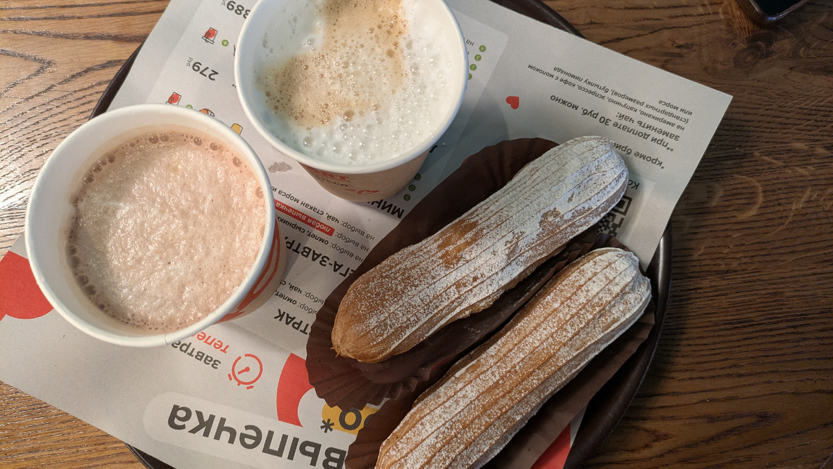В пятницу у меня был укороченный день, и я пригласила Милусика в кафе, она не отказала)) Зашли в пекарню Люди Любят, заказали эклеры, у меня с капучино, а у Миланы с какао. Дочка выросла, и мне очень нравится проводить с ней время. Мы много разговариваем, она интересуется всем)