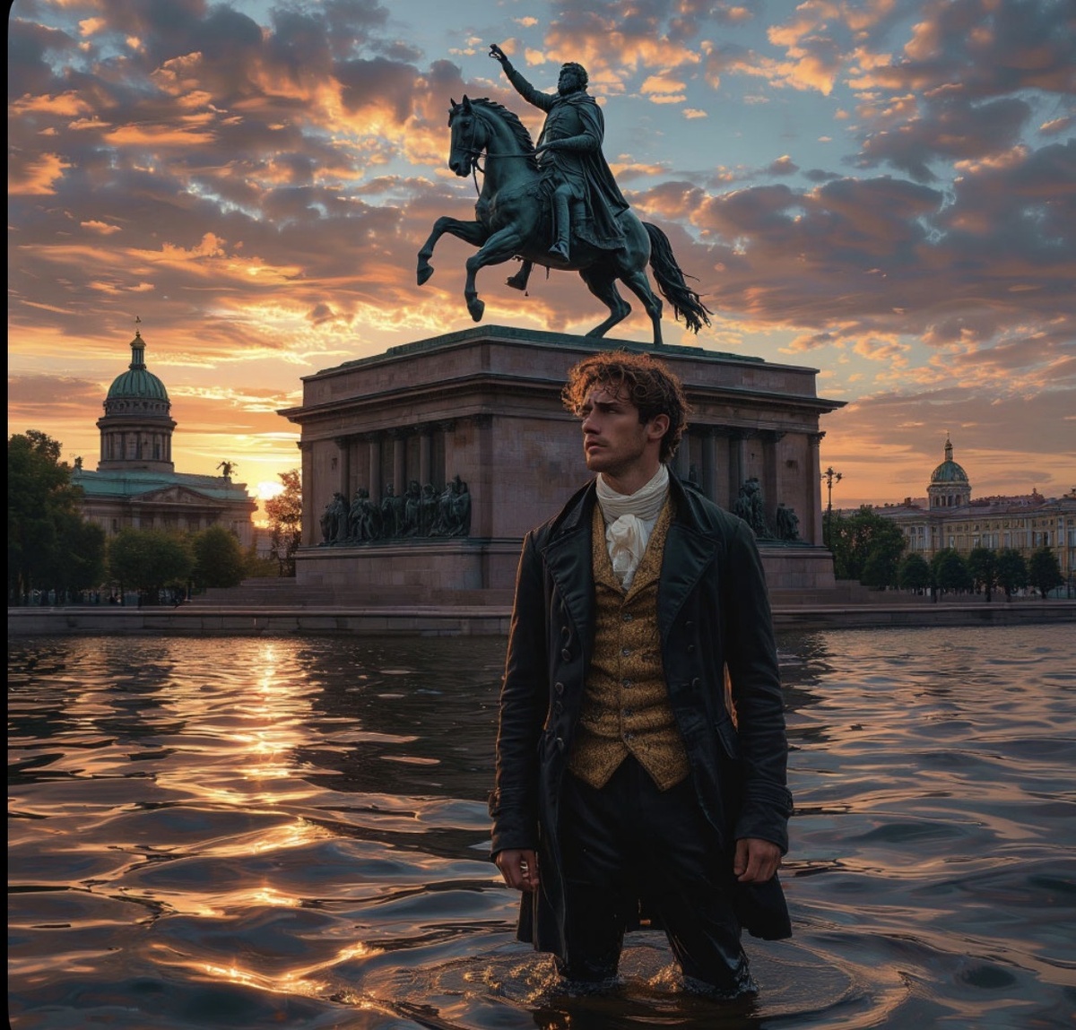 ΠΠΎΡΠΌΠ° Π½Π°ΡΠΈΠ½Π°Π΅ΡΡΡ Ρ ΠΎΠΏΠΈΡΠ°Π½ΠΈΡ ΠΠ΅ΡΠ΅ΡΠ±ΡΡΠ³Π°: ΡΠΈΡΠΎΠΊΠΈΠ΅ ΠΏΡΠΎΡΠΏΠ΅ΠΊΡΡ, Π²Π΅Π»ΠΈΡΠ΅ΡΡΠ²Π΅Π½Π½ΡΠ΅ Π·Π΄Π°Π½ΠΈΡ, ΡΠ΅ΠΊΠΈ ΠΈ ΠΊΠ°Π½Π°Π»Ρ. ΠΡΡΠΊΠΈΠ½ ΠΏΠΎΠ΄ΡΡΡΠΊΠΈΠ²Π°Π΅Ρ, ΡΡΠΎ Π³ΠΎΡΠΎΠ΄ ΡΠΎΠ·Π΄Π°Π½ ΡΡΠΈΠ»ΠΈΡΠΌΠΈ ΠΠ΅ΡΡΠ° I ΠΈ ΡΠ²Π»ΡΠ΅ΡΡΡ ΡΠΈΠΌΠ²ΠΎΠ»ΠΎΠΌ Π΅Π³ΠΎ Π²Π»Π°ΡΡΠΈ. ΠΠ΅Π΄Π½ΡΠΉ Π²ΡΠ°Π΄Π½ΠΈΠΊ, ΠΏΠ°ΠΌΡΡΠ½ΠΈΠΊ ΠΠ΅ΡΡΡ, ΠΈΠ·ΠΎΠ±ΡΠ°ΠΆΡΠ½ Π² Π΄ΠΈΠ½Π°ΠΌΠΈΡΠ΅ΡΠΊΠΎΠΌ ΠΎΠ±ΡΠ°Π·Π΅ Π²ΡΠ°Π΄Π½ΠΈΠΊΠ° Π½Π° ΠΊΠΎΠ½Π΅, ΠΎΠ»ΠΈΡΠ΅ΡΠ²ΠΎΡΡΡ ΠΈΡΡΠΎΡΠΈΡΠ΅ΡΠΊΡΡ ΠΌΠΎΡΡ ΠΈ ΡΠΈΠ»Ρ Π³ΠΎΡΡΠ΄Π°ΡΡΡΠ²Π°. ΠΠ²ΡΠΎΡ ΡΠΈΠ»ΠΎΡΠΎΡΡΠΊΠΈ ΡΠ°Π·ΠΌΡΡΠ»ΡΠ΅Ρ ΠΎ ΡΠΎΠΎΡΠ½ΠΎΡΠ΅Π½ΠΈΠΈ ΡΠ΅Π»ΠΎΠ²Π΅ΠΊΠ° ΠΈ Π²Π»Π°ΡΡΠΈ, ΠΏΠΎΠ΄Π²ΠΎΠ΄Ρ ΡΠΈΡΠ°ΡΠ΅Π»Ρ ΠΊ ΡΠ΅ΠΌΠ΅ ΠΊΠΎΠ½ΡΠ»ΠΈΠΊΡΠ° Π»ΠΈΡΠ½ΠΎΡΡΠΈ ΠΈ Π³ΠΎΡΡΠ΄Π°ΡΡΡΠ²Π°.