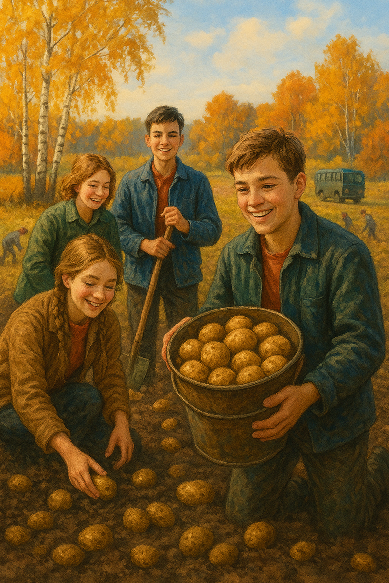 Осень… Листопад, золотистые березы, аромат яблок и… да-да, конечно же, знаменитая «картошка»! Для многих жителей бывшего СССР эта фраза мгновенно возвращает в детство и юность, вызывая улыбку и легкое чувство ностальгии. Поездки школьников на сельскохозяйственные работы начались еще в 1930-е годы прошлого века и стали неотъемлемой частью школьной жизни вплоть до начала 1990-х. Основная цель таких мероприятий заключалась в оказании помощи сельскому хозяйству в период сбора урожая. Особенно остро стояла проблема нехватки рабочей силы в сельской местности, ведь техника тогда была далеко не везде, а сроки уборки овощей крайне сжатыми. Чаще всего на помощь колхозникам выезжали ученики старших классов, начиная примерно с пятого-шестого. Конечно, существовали исключения: освобождали ребят по медицинским показаниям или семейным обстоятельствам. Но большинство подростков воспринимало поездку как своеобразный ритуал взросления, обязательный этап школьной жизни. Жизнь в полевых условиях был