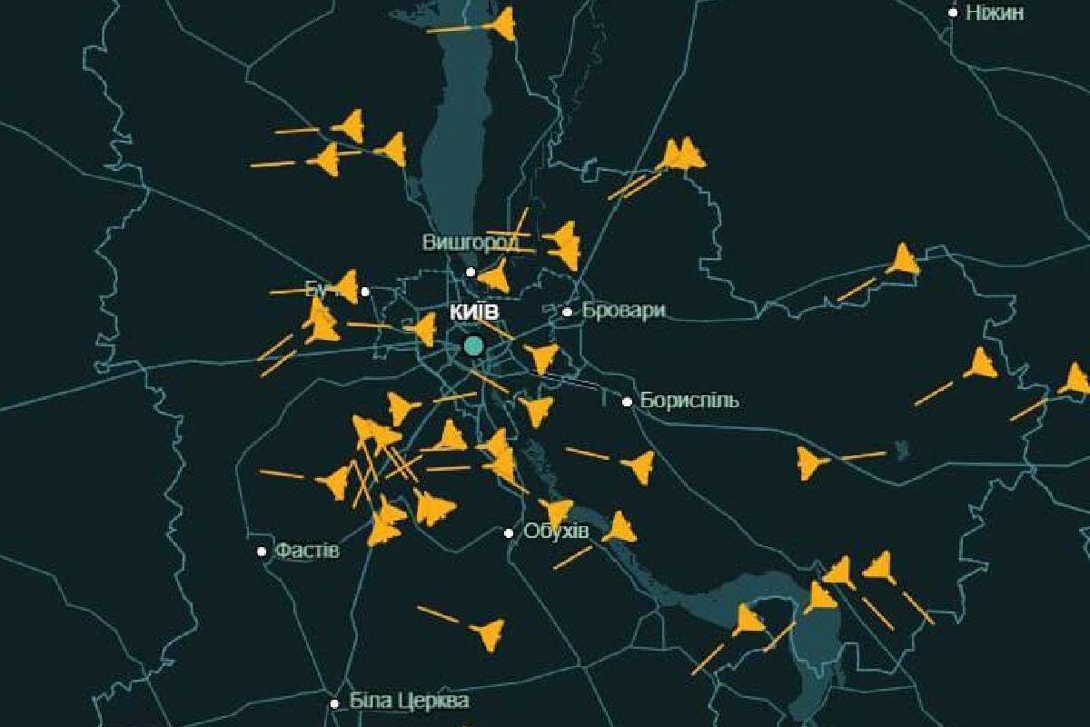 Небо над Киевом было плотно окружено дронами. Прилеты продолжаются до сих пор.
