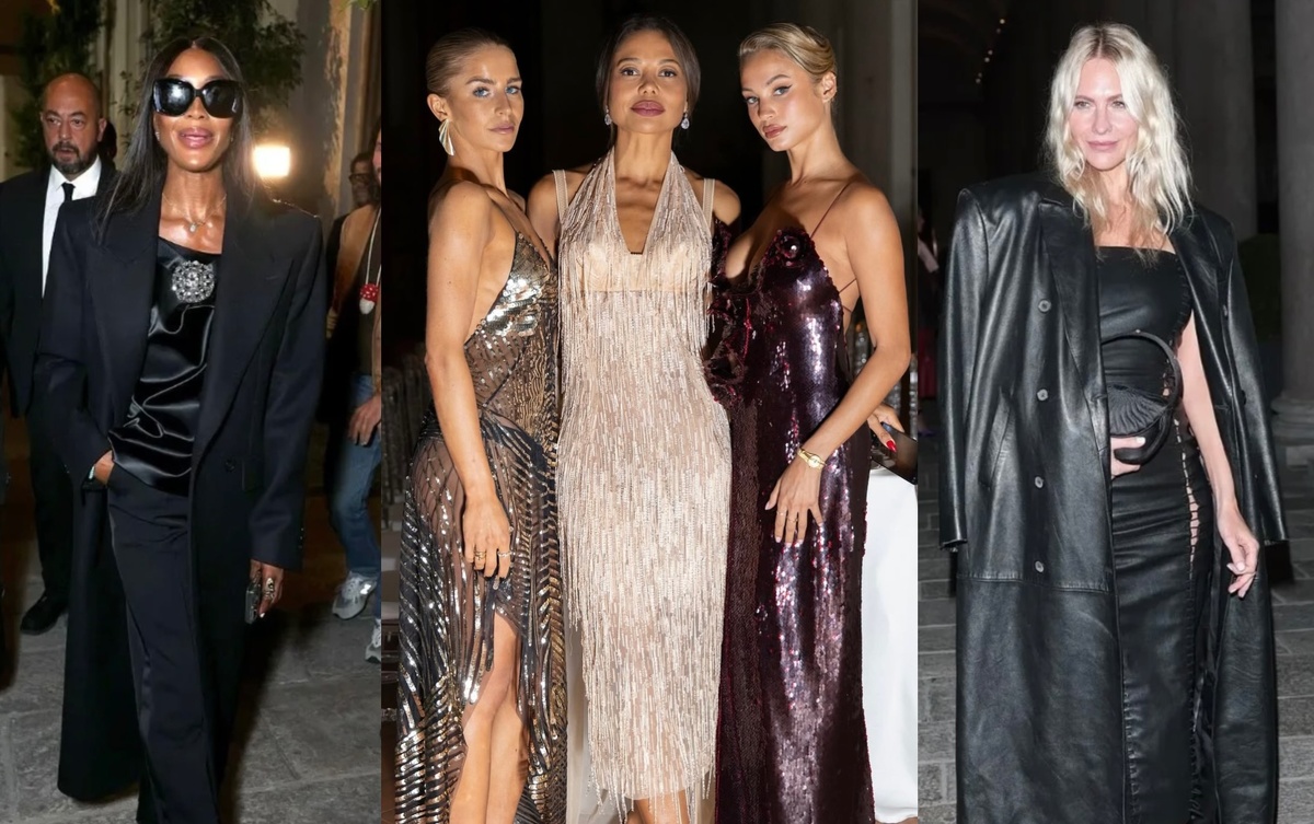 Одной из самых ярких вечеринок в рамках Миланской Недели моды стала вечеринка Эдварда Эннинфула в Portrait Milano, посвящённая запуску его проекта EE72 и нового журнала 72. Наоми Кэмпбелл — черная пантера Наоми появилась в стиле Dark Fashion: прямое чёрное пальто строгого кроя, шёлковый топ с акцентной деталью и классические брюки. Тотал-чёрный силуэт подчеркнул её силу и харизму. Настоящая «чёрная пантера» — уверенная и непоколебимая, она стала главным символом вечера. Наталья Водянова — сияние тридцатых Наталья выбрала платье в духе 30-х годов: черное, расшитое бисером, которое переливалось в свете софитов. Поверх — объёмная фиолетовая шуба, добавившая в образ роскоши и театральности. Её выход напомнил кадр из старого голливудского фильма. Елена Перминова и Тарас Романов Елена блистала рядом с бойфрендом Тарасом Романовым. Она сделала ставку на чёрный базовый силуэт с акцентом в виде винного меха. Он выбрал сдержанный чёрный монохром. Вместе пара выглядела гармонично и кинема
