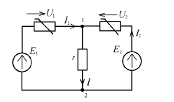 Ниже приводится электрическая схема с двумя нелинейными сопротивлениями, а также исходные данные, необходимые для расчёта (см.рис.1). Данная схема взята из учебно-методического пособия для ВУЗов (см.л.5).