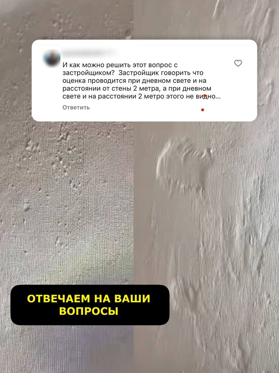 📌 Вывод: требуйте у застройщика устранения таких недостатков, ссылаясь на СП 71.13330.2017 и категорию К3 для поверхностей под обои. Замазывать «точечно» — не вариант, нужна полноценная переделка. ✅Для стен под отделку применяется освещённость не ниже 300 люкс (имитация дневного света). Поднимем качество строительства вместе!