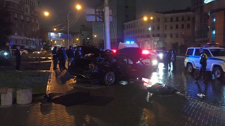 В Новосибирске водитель Mersedes на скорости влетел в столб и погиб