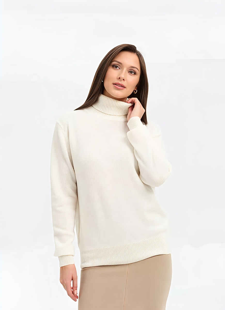 Плотность вязки имеет значение. Тонкий трикотаж подходит для многослойных образов: под жакет, с рубашкой снизу. Средняя плотность — для самостоятельной носки. Такой джемпер держит форму и не требует дополнений.
