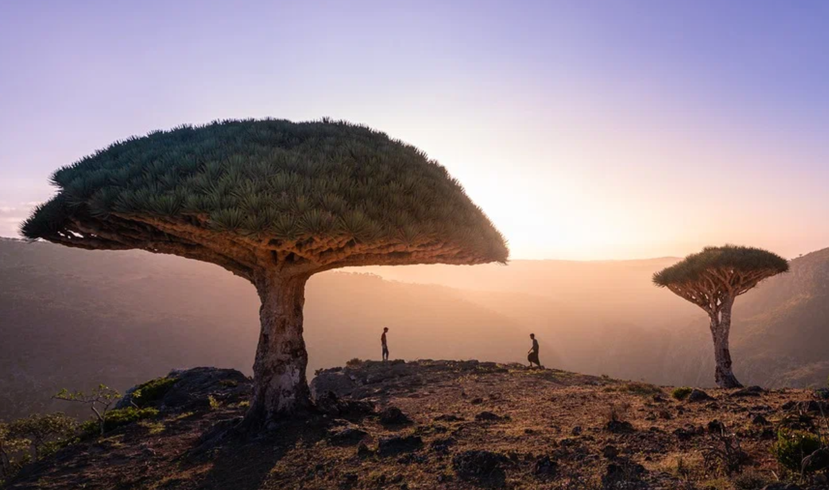 🌳 Плато Диксам — рощи драконовых деревьев, создающие пейзаж, похожий на древнюю мистическую вселенную.