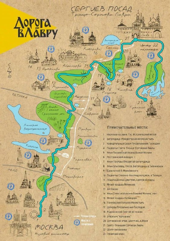 Сегодня я хочу поделиться с вами маршрутом который стоит пройти хотя бы раз в жизни. Он называется «Дорога в Лавру». Это древний путь от Москвы до Свято-Троицкой Сергиевой Лавры в Сергиевом Посаде — около 120 километров. Когда-то по нему шли паломники, монахи, цари и простые люди. Сейчас маршрут восстанавливают, и его можно пройти самостоятельно. Делюсь удобным сайтом, где можно полностью изучить весь маршрут. https://dorogavposad.ru/map По дороге открываются удивительные картины Подмосковья, тихие деревни, лесные тропы, речушки, старые храмы и святые источники. Идти можно по-разному — вся дорога займёт несколько дней, но можно выбрать и короткие участки, если хочется просто почувствовать атмосферу. В своем плане путешествий, я поставил цель к обязательному трекингу по пути. Так что если вы ищете в России маршрут, где соединяются природа, история и духовный смысл — «Дорога в Лавру» отличный вариант. 📱 дневник путешественника