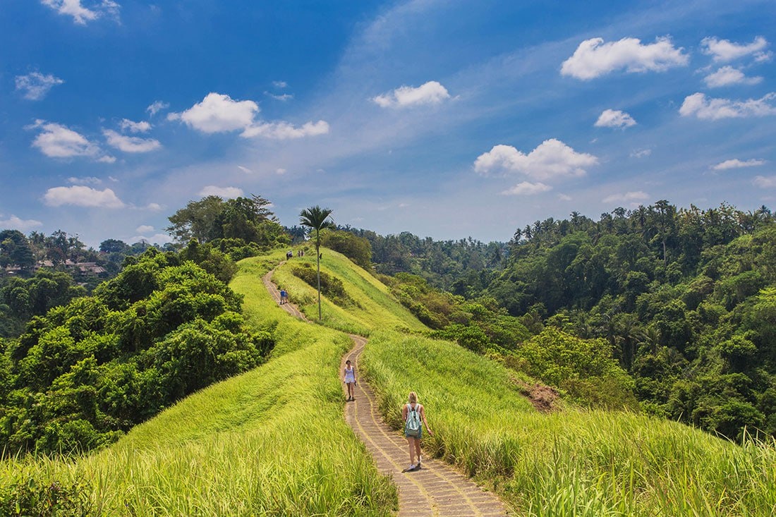 Если вы хотите осмотреть окрестности Убуда и насладиться местными пейзажами, отправляйтесь на пешую тропу Чампуан, расположенную недалеко от города. Тропа ведет через покрытые буйной растительностью холмы, с которых открывается прекрасный вид на долину. Маршрут начинается прямо от храма Гунунг Лебах (Gunung Lebah Temple). Тропа была построена специально для того, чтобы туристы и местные жители могли наслаждаться первозданной красотой природы Убуда. Проще говоря. Бали