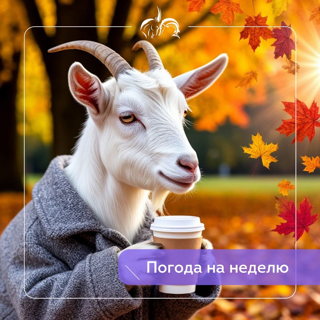 🍁Столбик термометра неумолимо ползет вниз, осень окончательно вступила в свои права. По прогнозам синоптиков, на этой неделе средняя температура составит +12 градусов днем и +2 градуса ночью. Порывы ветра будут достигать 6 м/с. ☕️Коза настоятельно рекомендует не выходить из дома без стаканчика согревающего кофе! ✅Подписаться на Козу и Стерлядь