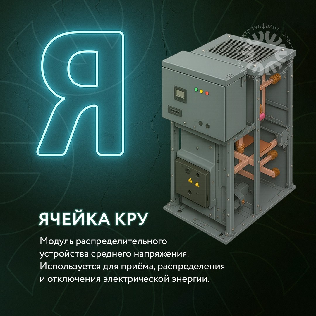Электроалфавит. А вот и последняя буква: 😶 — ЯЧЕЙКА КРУ Ячейка КРУ — это элемент распределительных устройств среднего напряжения, которые стоят на подстанциях. Именно через них проходит электричество, прежде чем попасть в наши дома, офисы и магазины. Задача ячейки простая и важная: 🔸 принять и распределить энергию 🔸 защитить сеть при аварии 🔸 обеспечить стабильное питание для потребителей. Без КРУ и ячеек невозможно представить современный город — они отвечают за то, чтобы у нас в электросети всегда было напряжение и свет включался с первого щелчка. 📌 КРУ и другое оборудование по индивидуальным размерам можно заказать на предприятии НЭМЗ Инжиниринг. Проконсультируем, сделаем расчет, изготовим! 🗄 ✉️ Отправить запрос можно на почту: centr-com@elektro.ru #ПланетаЭлектрика_электроалфавит #ПЭ_энергия #НЭМЗ