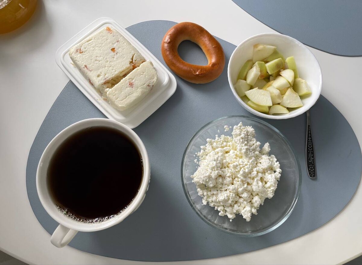 Вчера: на завтрак творог с яблоком, баранкой и творожной массой; на обед овощи с индейкой; на ужин беляшики 😍 яблоко
