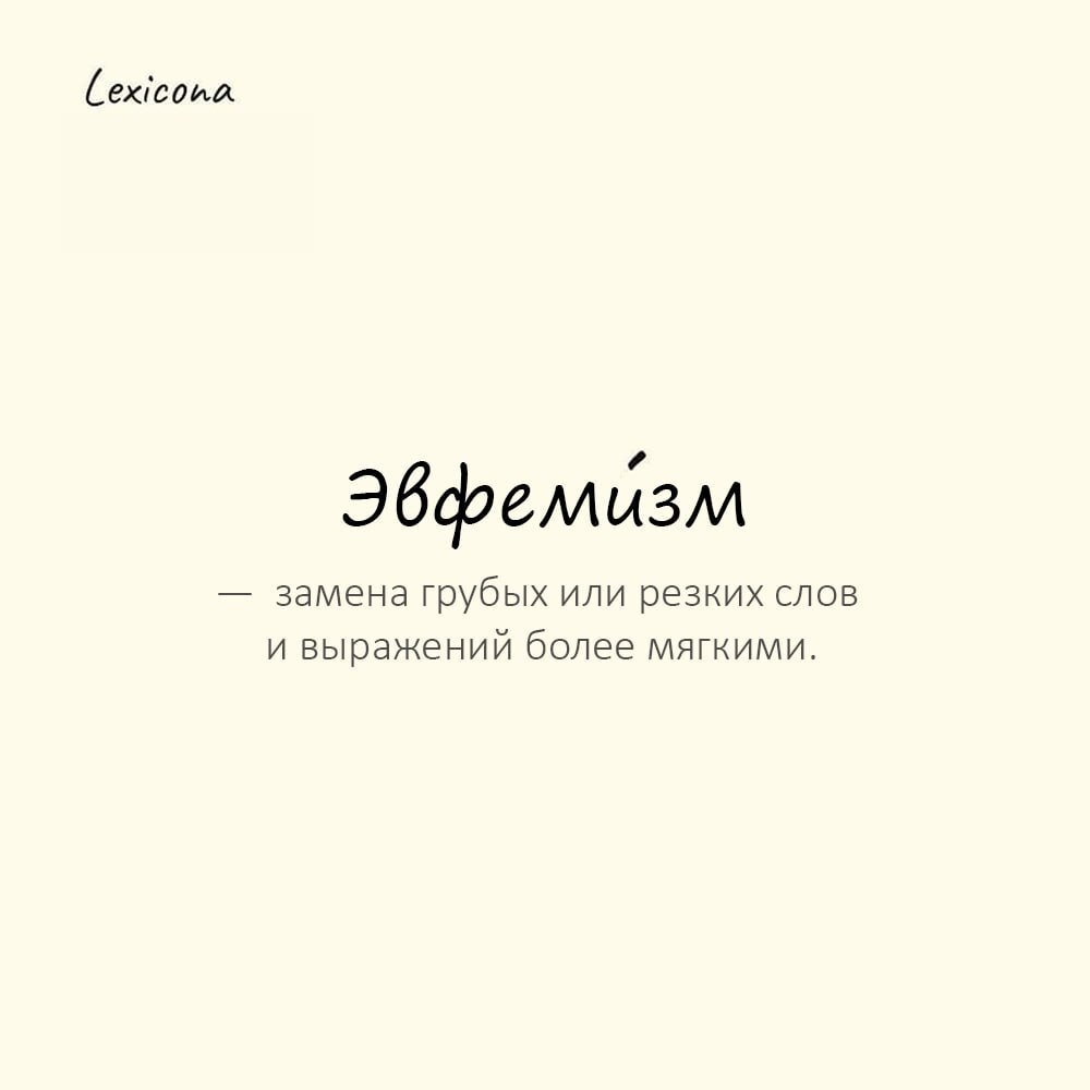 Эвфемизм — замена грубых или резких слов и выражений более мягкими 😊 Пример употребления: «Отойти в мир иной» — это всего лишь эвфемизм, призванный смягчить суровое слово «умереть». 🌸 #эвфемизм #язык #слова #выражения #мягкость #коммуникация #речь 🗣️