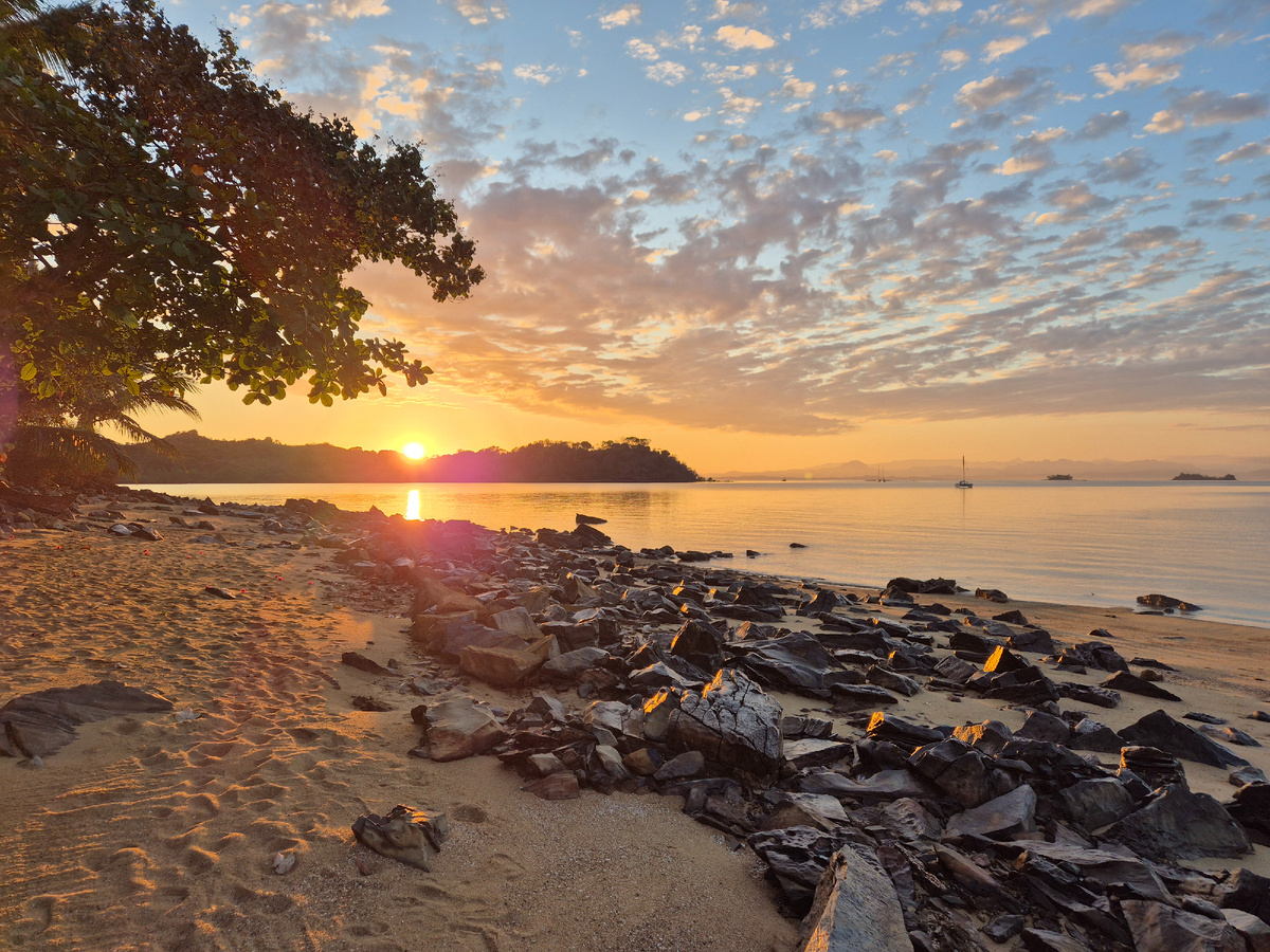 В 5.45 вышли на берег, но опоздали, надо было минут на пять раньше, потому что солнце уже начало подниматься, а не только собиралось появиться.
