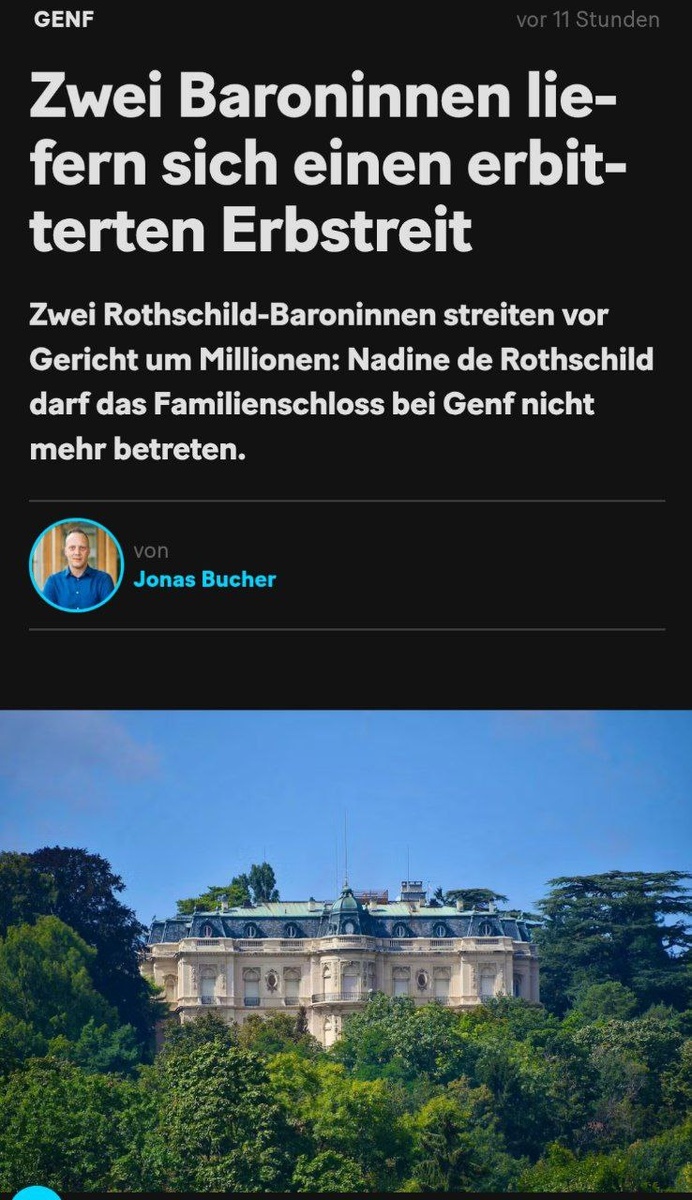 💬 Простите, но две старые вешалки ни чего в руках тяжелее бокала не державшие, сошлись в смертельной схватке. Старушку нужно бы пожалеть , но как то не сходится. И не про картины - музеи речь, а как всегда - про бабло . 🫡 " Две баронессы знаменитой династии Ротшильдов сошлись в ожесточённой наследственной тяжбе: 93-летняя Надин де Ротшильд потерпела поражение в Женевском суде. Ей больше нельзя посещать замок Преньи возле Женевского озера. Её невестка, Ариан де Ротшильд (59 лет), и четыре внучки отказали ей во входе. В центре конфликта — многомиллионная коллекция произведений искусства: картины, мебель и предметы эпохи Ренессанса. Спор начался после смерти Бенжамена де Ротшильда Коллекция хранится в замке и оценивается в несколько сотен миллионов франков. Надин де Ротшильд хочет выставить свою долю в музее. Ариан и её дочери против раздела или экспонирования ценностей. Спор разгорелся после смерти Бенжамена де Ротшильда, сына Надин и мужа Ариан. Он скончался в январе 2021 года в