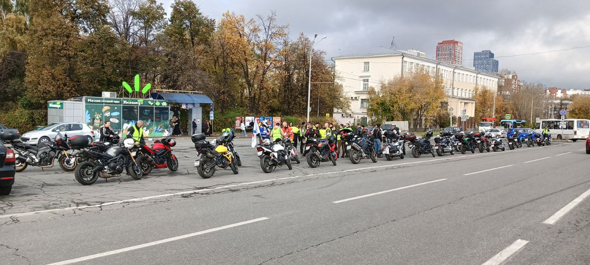 Закрыл гештальт и прокатился в компании других мотоциклистов по центру города. Задорно пошумели выхлопом, потолкались в колонне, надышались ароматом свежесожжённого бензина. А всё потому, что в этом году хорошая погода закончилась до дня официального закрытия мотосезона. По красивой осенней дороге удалось прокатиться заранее, а не как в прошлом году. Утром 27 сентября электронный голос Алисы "обрадовал" предсказанием всего 6 градусов выше нуля и потоками небесной слякоти на целый день. Стало интересно, как много людей доверяют прогнозам, поэтому поехал участвовать в официальном закрытии мотосезона. Спойлер: те, кого прогноз испугал, были в меньшинстве, большинство мотоциклистов оказались не сахарными. Команда Мотоджимхана-Екб - не клуб, но группа людей увлечённых мотоциклами - разместили предложение "джимханистам" и сочувствующим собраться вместе до старта основного мероприятия. В этом году я ходил на занятия редко, но это, наверное, сейчас самая близкая мне по духу группа мотоциклисто