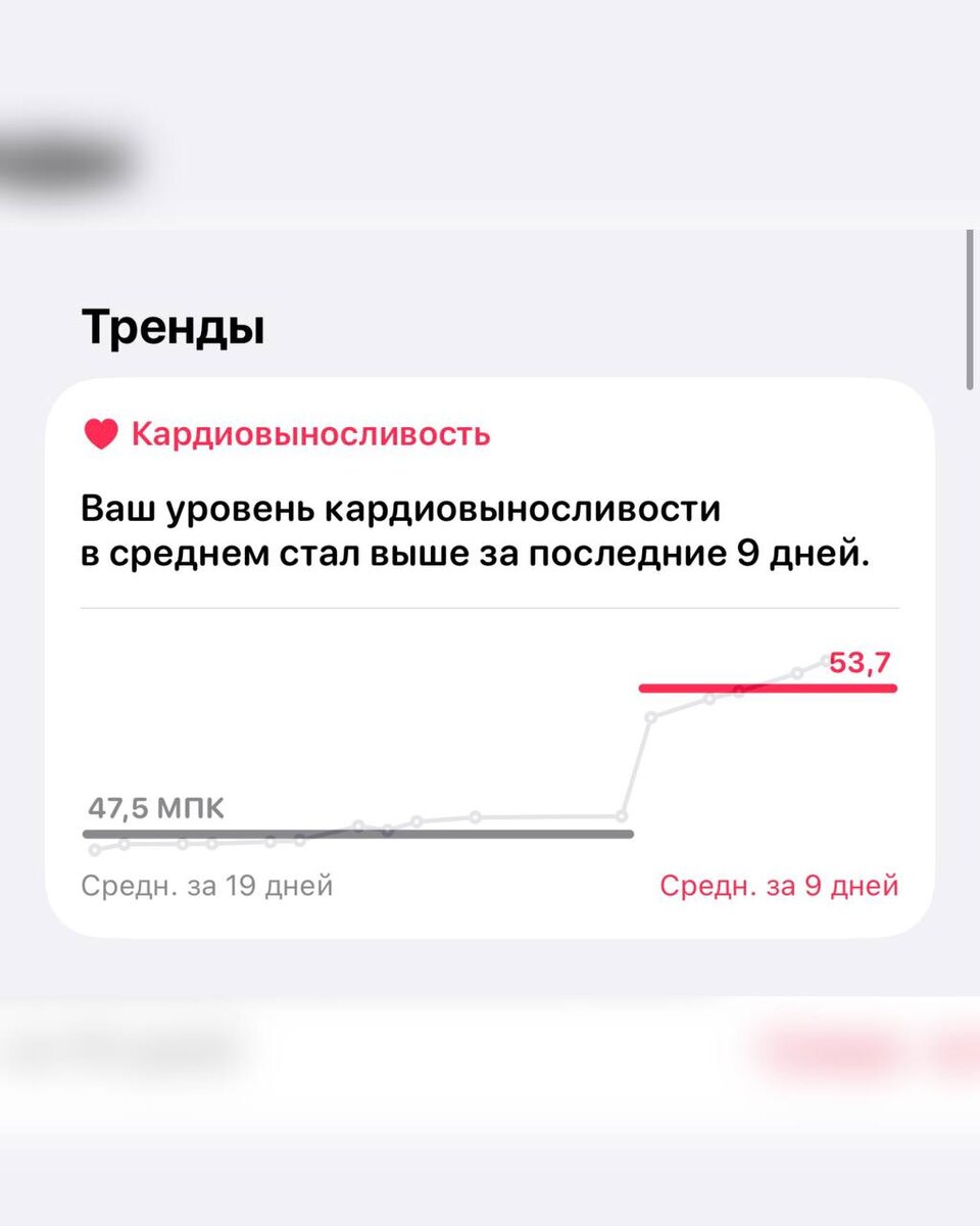 ПРОВЕРЬ СЕБЯ НА ЧЕМОДАНАХ И ЛЕСТНИЦЕ Молодость тела — это не свечки на торте, и даже не морщины. Это как ты дышишь, когда бежишь на поезд с чемоданами. Или как быстро приходишь в себя после подъёма с пакетами по лестнице, когда отключили лифт. У меня есть свой «показатель молодости» – максимальное потребление кислорода. Чем выше цифра — тем дольше я в деле на пробежке в парке или в бассейне. Да и в постели тоже ☺️ Максимальное потребление кислорода (МПК, англ. VO₂ max) — это максимальное количество кислорода, которое организм способен усвоить и использовать во время интенсивной физической нагрузки в течение 1 минуты. МПК отражает аэробную выносливость — показывает, насколько эффективно тело превращает вдыхаемый воздух в топливо для мышц. Чем выше показатель, тем больше кислорода поступает в кровь, тем дольше можно поддерживать активную работу без усталости. 🗓 Сегодня Apple Здоровье порадовало новым трендом. После операции в августе мой показатель пошёл вверх и стал рекордным