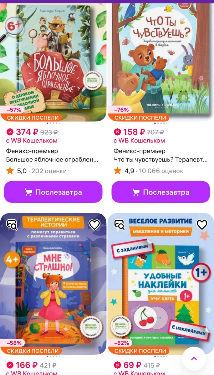 Небольшая подборка, что классного можно купить на разных распродажах на WB Нашла скидки у издательства «феникс-премьер», «букваленд», «махаон».