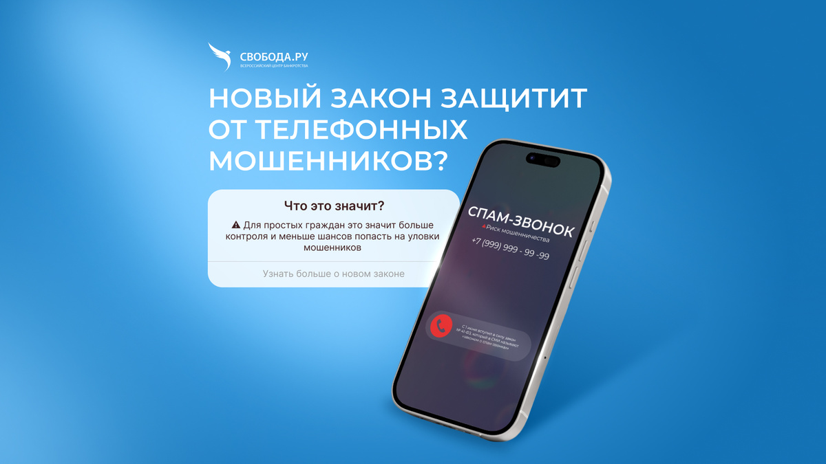 С 1 июня 2025 года начал действовать закон № 41-ФЗ. В СМИ его уже прозвали «законом о спам-звонках», хотя суть поправок куда шире. Документ затрагивает сразу несколько сфер: связь, защиту прав потребителей, банковское регулирование и даже меры против отмывания доходов. Одна из ключевых задач закона – защита граждан от телефонного мошенничества. Раньше такие схемы сложно было пресекать: звонки поступали с подменных номеров, источники оставались неизвестными. Теперь правила меняются. Компании, нарушающие правила, ждут штрафы: Для обычных пользователей новый закон означает: Однако нужно помнить: мошенники всегда ищут обходные пути. Уже сейчас активно используются схемы с рассылкой ссылок и поддельных сообщений. Поэтому закон – это дополнительная защита, но не абсолютная гарантия. Телефонные аферы нередко заканчиваются оформлением кредита или займов. В итоге вы остаётесь с долгами, которые не способны погасить. Важно знать: закон предусматривает возможность полностью освободиться от долгов