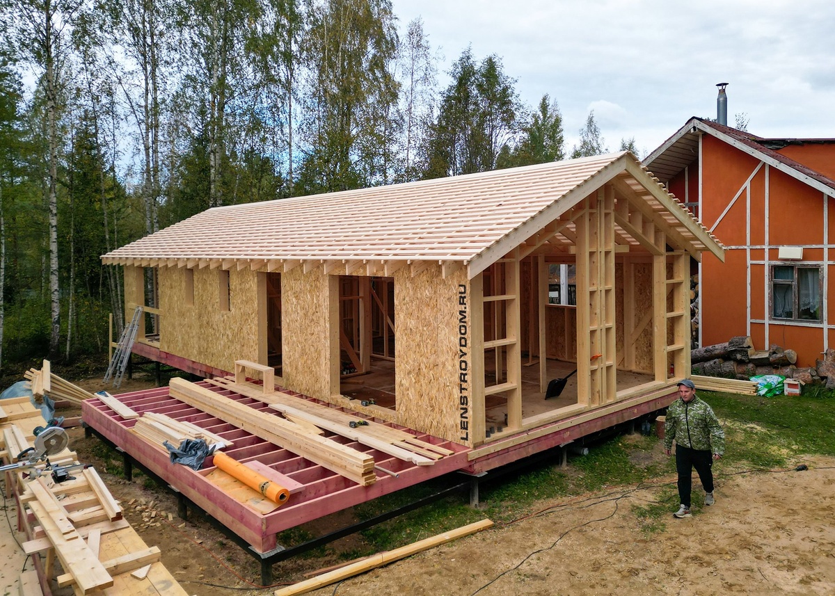 Собрали стропильную систему и готовим основание под монтаж кровельного покрытия на объекте в КП «Аврора», Выборгский р-н, В качестве