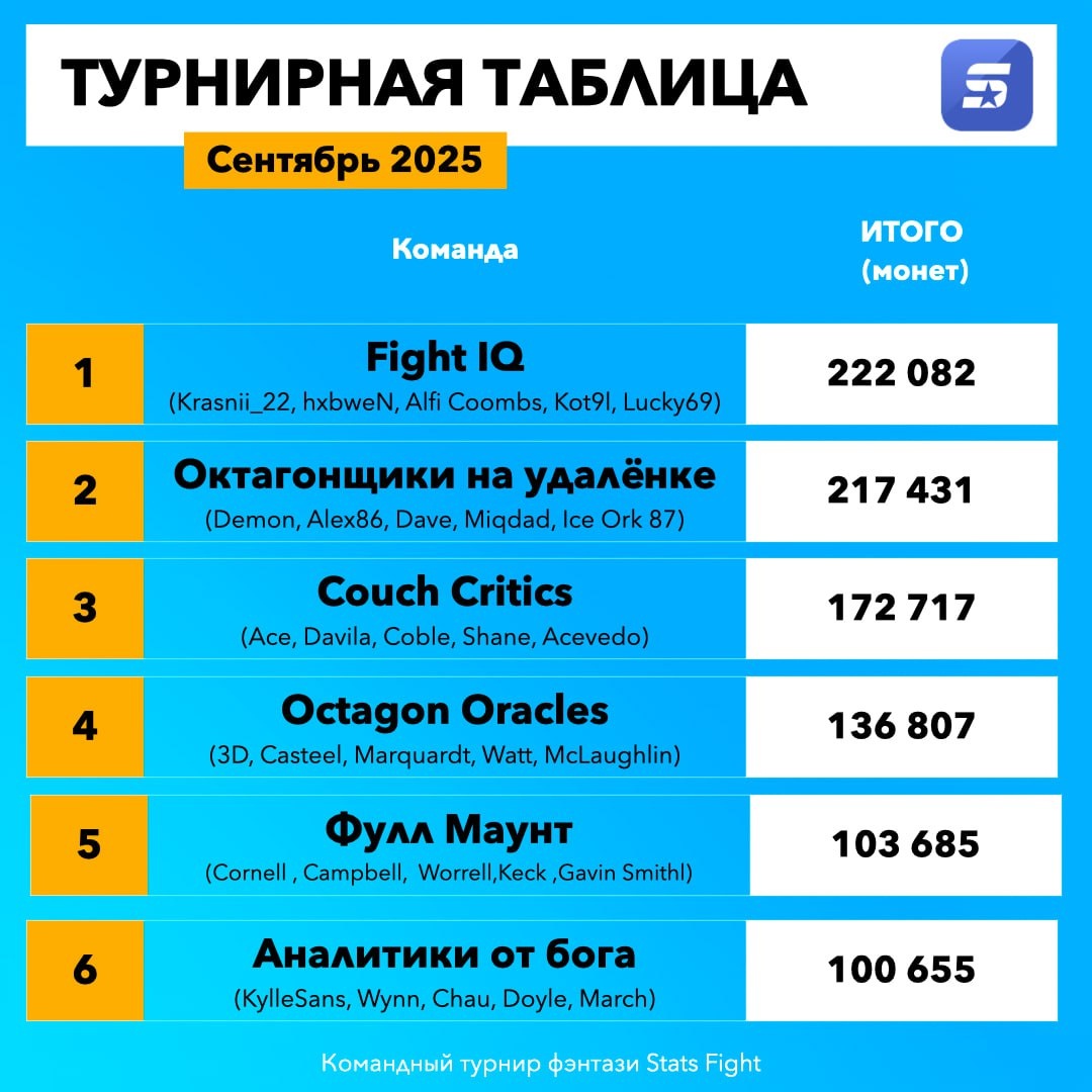 🏆 Таблица командного турнира Stats Fight в сентябре! Итог