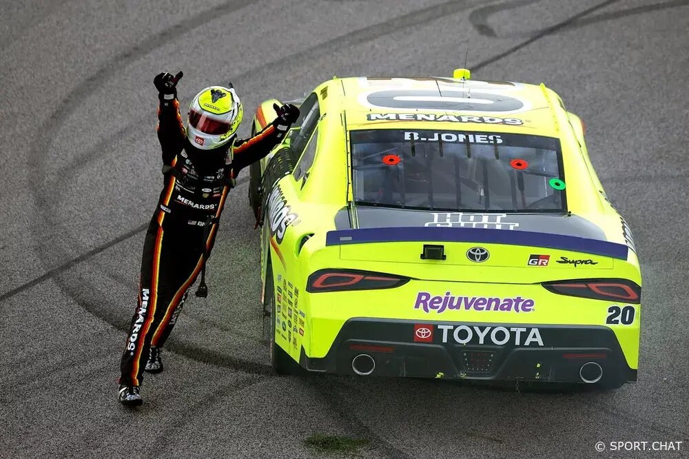 зафиксировал своё участие в следующем раунде плей-офф — Round of 8. Джонс, выступающий на машине команды Joe Gibbs Racing, доминировал в