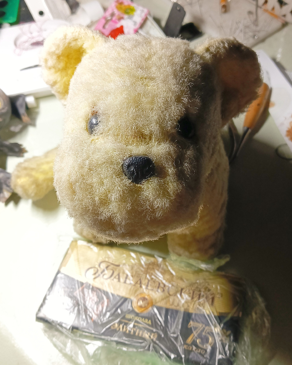 Привет, друзья! Сегодня я хочу поделиться с вами увлекательной историей о превращении одной милой советской мягкой игрушки. Давайте погрузимся в этот волшебный процесс! Все началось с того, что ко мне в руки попал настоящий комочек счастья из Колонтаево. Его хозяйка, прогуливаясь по местной "блошке", заметила лишь торчащий желтенький хвостик из коробки с игрушками. Потянув за него, она вывела на свет пыльного, но все еще очаровательного львёнка. Конечно же, он сразу же отправился с ней домой! После небольшой переписки я уже мчалась на доставку, чтобы забрать этого бедолагу и вернуть ему былую славу. Вот так он выглядел при распаковке — прямо с дороги, и даже с маленьким подарком внутри! При дневном свете мы начали знакомство. Я решила запечатлеть этот момент для истории и зафиксировать весь процесс обновления. Первым делом я аккуратно распорола ниточки, соединяющие голову и тело. И тут меня ждало приятное удивление — под ними оказалась шея и даже механизм для поворота! Это было нас