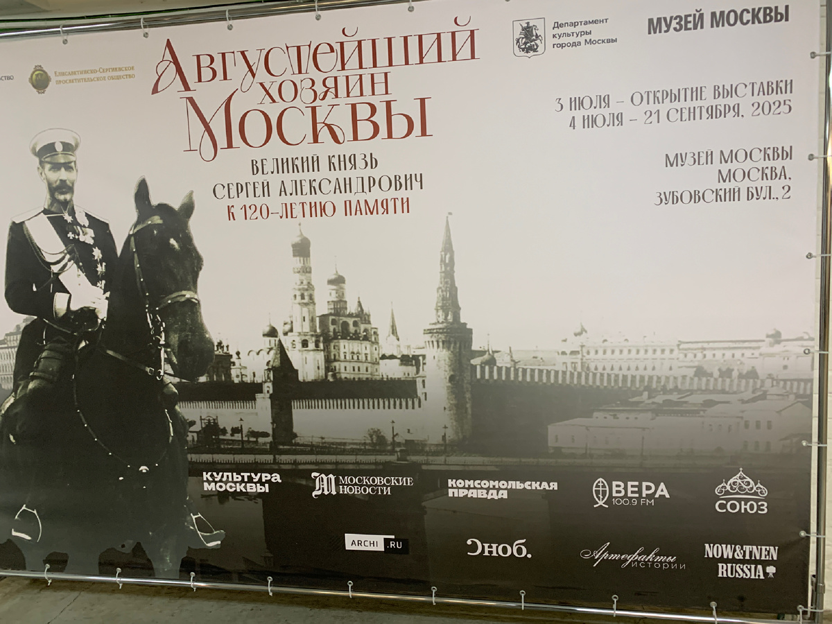 Недавно была на выставке в музее Москвы, посвященной Великому князю Сергею Александровичу. Выставка уже прошла, но мне захотелось поговорить на эту тему. Надеюсь, что кому-то это будет интересно. Выставка была посвящёна жизни и деятельности Великого князя Сергея Александровича. Экспозиция приурочена к 120-летию со дня его трагической гибели и подготовлена фондом «Елисаветинско-Сергиевское просветительское общество» при поддержке Правительства Москвы. На выставке были представлены редкие документы, письма, фотографии, личные вещи князя, а также свидетельства его служения государству, армии и обществу. Фотографировать было сложно, даже почти невозможно.. Как раз в это время проходила организованная экскурсия. Но несколько снимков я все-таки сделала. И мне удалось услышать часть экскурсии. Скажите, а много ли мы знаем о князьях и царях? При социализме нам хошо преподавали Историю КПСС . Всем хорошо были знакомы лица Карла Маркса, Фридриха Энгельса и Ленина. А вот лиц царей мы не знали. Я и сейчас нередко по памяти цитирую вышеназванных вождей пролетариата. А вот порядок царствования забываю. Я уже не один раз писала, что при социализме много раз была в Канаде и познакомилась там с дворянами-представителями первой волны русской эмиграции, или как ее еще называют, белой эмиграции. И вот, одна дворянка в Монреале дает мне в руки посмотреть огромную книгу. Это был шикарный фотоальбом, выпущенный православной церковью заграницей по случаю 80-летия коронования Николая Второго. В альбоме были портреты всех царей с коротким описанием правления каждого из них. Для меня это было все ново. А потом я поехала в гости к другой дворянке. Мы с ней подружились. Звали ее Любовь Александровна. Беседовали с ней на разные темы. И она мне давала почитать то, что никогда не было на наших полках. В том числе дала мне почитать очень толстую книгу о Великой княгине Елизавете Федоровне. Я ни о ней, ни о Сергее Александровиче ничего не знала. Я читала, обливаясь слезами. Было отчего . Жуткие, печальные страницы нашей истории. А потом, уже в другие времена , уже при новом общественном строе у нас меня судьба постоянно сталкивала с именем Елизаветы Федоровны . в 2004 году мне довелось идти Крестным ходом за мощами Елизаветы Федоровны и Святой Варвары, которая была с княгиней до последнего часа и убита вместе ней в Алапаевске. Мощи привозили в Россию из Иерусалима. По приезде в Москву я некоторое время жила в Щербинке и рядом оказался храм , носящий имя Елизаветы Федоровны. А в Марфо-Мариинской обители нечаянно оказалась 11-го октября -в день обретения мощей Елизаветы Федоровны и иникини Варвары и попала в обители на праздник. А вот о Сергее Александровиче и его заслугах перед Москвой до недавнего времени почти не говорили. Из истории СССР все хорошо знают о Ходынке .. На Ходынском поле 18 (30) мая 1895 года , на торжестве по случаю коронации императора Николая II произошла давка. Погибло 1389 человек. Историки до сих пор разбираются, кто прав и кто виноват. Я не историк и ни свидетель , а простой обыватель и судить как это было, не могу. В портале "Культура РУ я прочла-«На великом князе Сергее Александровиче был поставлен эксперимент по дискредитации российской императорской власти и ее десакрализации. Этот опыт дал блестящие результаты для тех, кто его производил, — образ Сергея Але