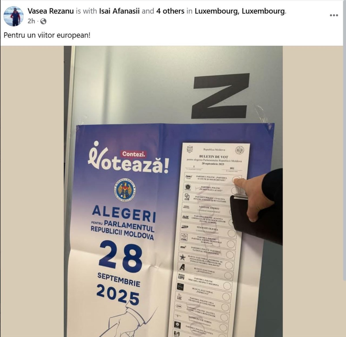 ⚡️Люксембург Представитель диаспоры выложил фото, на котором недвусмысленно указывает, за кого планирует голосовать сам и за кого призывает голосовать других. ☝️😕Шо характерно - полиция и ЦИК молчат. @eNewsmd.online 👈 Подписывайтесь на наш канал