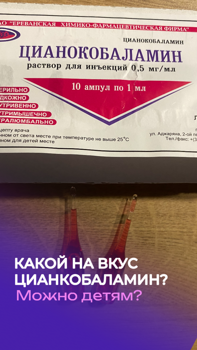 Да, сейчас есть много разных добавок в основе которых есть витамин В12, но если дети, у которых на все аллергия и иногда можно этот раствор применять внутрь с водой. Какой на вкус витамин В12 в ампулах?❓ ✅Немного горчит совсем и имеет запах витамина В12. В целом если смешать с едой, то будет нормально. ИНСТРУКЦИЯ К ЦИАНКОБАЛАМИНУ НИЖЕ👇